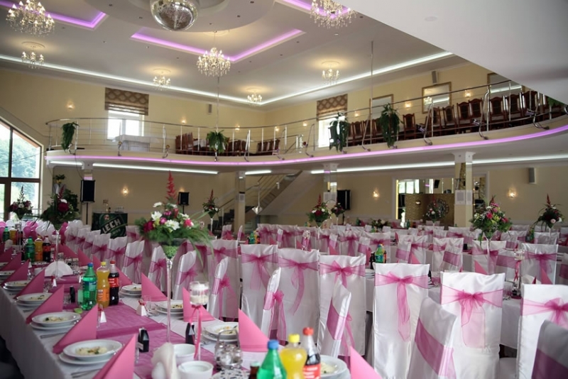 Mamy dwie sale bankietowe i restaurację, w tym jedna największa w okolicy sala taneczno-bankietowa z antresolą.